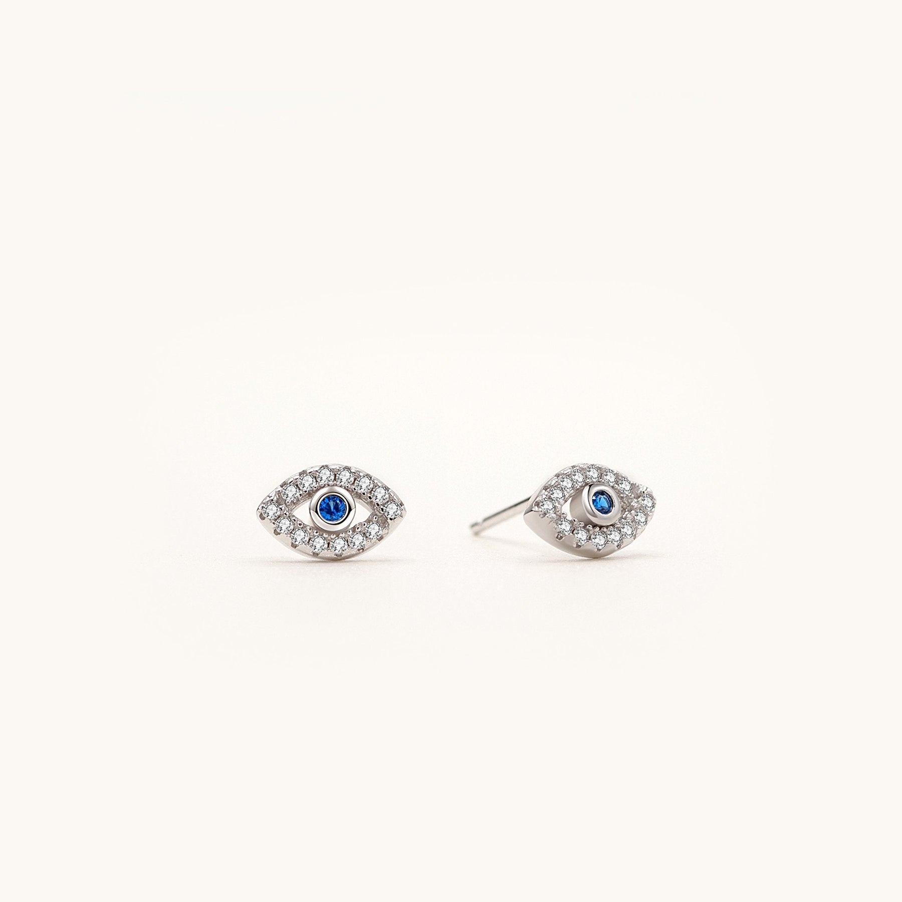 Channel your inner mystic. The evil eye earrings are a contemporary design inspired by ancient symbols of protection. A beautiful cobalt blue quartz iris helps to reflect harmful energies and intentions sent your way. White cubic zirconia stones frame the quartz beautifully to create the perfect spiritual accessory for any outfit. The sterling silver earrings are hypoallergenic, helping to prevent any irritation for those with sensitive skin.